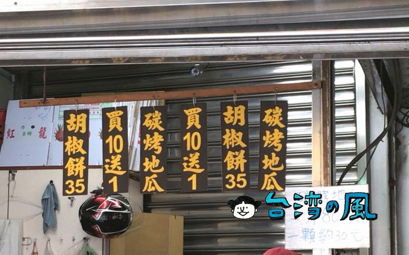 一見メニューが多そうに見えますが「胡椒餅」と「碳烤地瓜(焼きいも)」の2種類だけです。